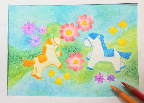 水彩色鉛筆で 新作の絵を描きました♪