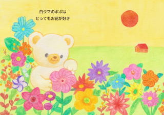 お花を探しに 踏み出す白クマのポポ